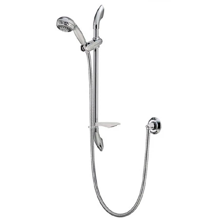 A stylish adjustable shower kit consisting of a multifunction handset, hose, slide rail, wall union and soap dish. Varispray shower heads are suitable for use with all domestic water systems and offer multiple spray patterns to suit your mood. All Varispray shower heads come with anti-scaling, clear flow technology, which helps to remove limescale build up to ensure well defined spray patterns every time you shower. Simply rub clean the flexible nozzles on the shower head to keep it working as good as new.
