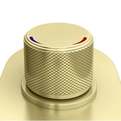 The stylish Arezzo industrial-style brushed brass 1 touch push button smart control shower valve is perfect for adding a striking finishing touch to your contemporary bathroom. Features easy to use instant 1 touch push button start/stop water flow activation. Temperature and flow is easily adjusted by simply turning the mixing valve. Crafted to the highest standards, this stunning shower valve features a round knurled textured tap head controls, perfect for creating an eye catching industrial look in your bathroom. Plated in a brushed brass finish which is highly resistant to corrosion. This ‘triple’ shower valve is perfect for installing in a concealed arrangement, outlets that can be operated individually, or enjoy one, two or three simultaneously.