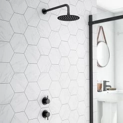 Modern and minimalist, this Arezzo Concealed Tap and Thermostatic Control Valve is sure to impress. This set up includes a concealed shower valve, so all excess parts are hidden neatly away. This means you’re left with a chic, streamlined shower that’s a joy both to look at and to use. Modern controls in matt black allow you to adjust the temperature and flow separately. Cleaning the luxurious rainfall shower head is a breeze, too, thanks to its handy rub clean nozzles. To complete the monochrome aesthetic, coordinate your space with the matching Arezzo Matt Black bath or basin taps.