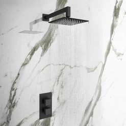 Bring some luxury to your bathroom with the Arezzo Matt Black Square Shower Package. Whether you’re renovating a tired shower area or redesigning your entire room, the square design and striking black finish introduce a touch of class. The thermostatic shower valve has easy to operate controls that let you manage the temperature and flow easily. You can also use the swivel joint in the fixed shower head to set the perfect angle. You’ll get an invigorating bathroom experience with this rainfall shower head, which is designed to last thanks to wipe clean nozzles that eliminate limescale build up.
