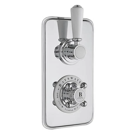 The Bayswater White Twin Concealed Thermostatic Shower Valve combines the elegance of traditional styling with the precision and technology of modern day design. Manufactured from solid brass and beautifully finished in chrome to the highest quality. The shower valve can be used on all types of water systems and offers full thermal protection to prevent scalding in the event of hot or cold water shut off. The built-in diverter allows 2 outlets to be used one at a time.