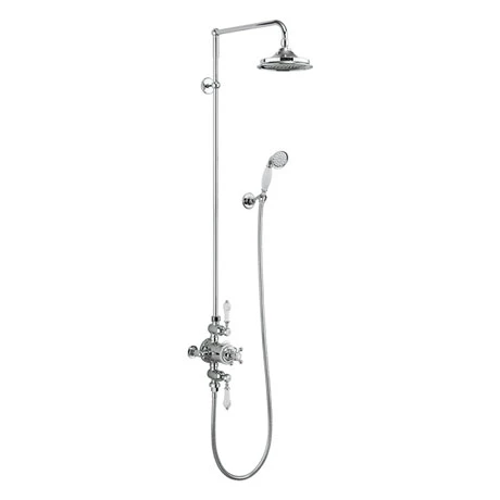 Capture old-world elegance in your bathroom space with this classic Burlington Avon exposed shower. Replete with special features, you can enjoy its intricately designed controls and traditional ceramic cross and lever handles. The AirBurst showerhead saves up to 33% more water while a practical handset also gives you the option to manually direct the flow. Both showerheads feature practical anti-limescale nozzles that can be washed clean in a jiffy.
