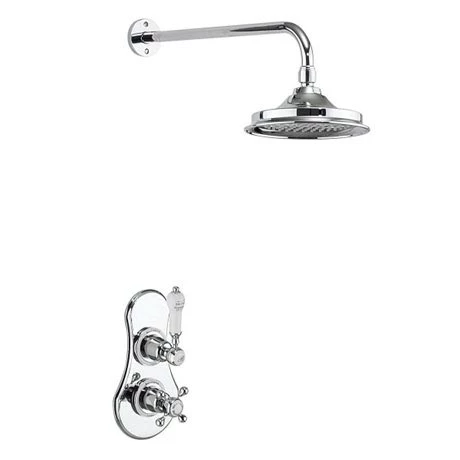 The Severn Thermostatic Concealed Single Outlet Shower Valve with Fixed Head epitomises elegance with its traditional design. This shower package comprises of a thermostatic single function brass valve with independent temperature control, traditional brass faceplate, Claremont handle with ceramic lever, 390mm adjustable fixed shower arm and a choice of a 6, 9 or 12″ AirBurst shower head.