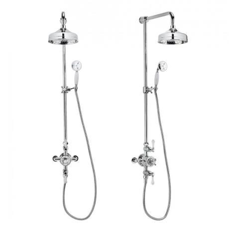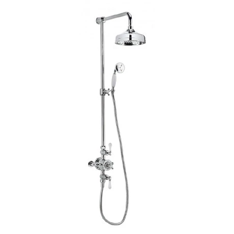 This thermostatic shower valve with fixed head, slider rail and handset is a traditional style from the Belgravia exposed valve collection. Its timeless and elegant design will make this a centrepiece for any traditional bathroom. Features an advanced thermostatic Vernet cartridge and smooth diverter which brings together function and superior style. Available with an 8″ fixed head as standard or add a touch of hotel luxury to bathrooms by upgrading to a 12” fixed head, the ultimate style statement for homes.