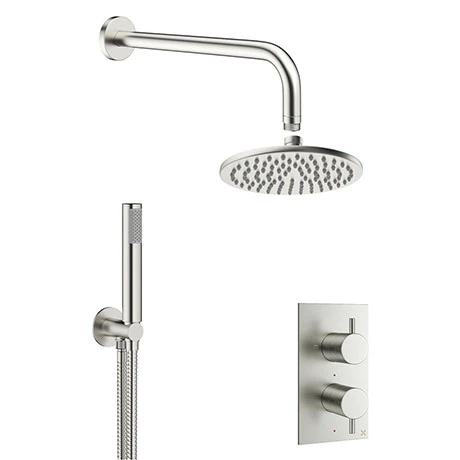 This complete shower bundle from Crosswater will transform any contemporary bathroom with its sleek and trendy design. The bundle consists of a 2 outlet shower valve, 200mm shower head and arm, wall outlet, shower handset and hose. The thermostatic shower valve features an in built anti-scald device to protect you and your family. All Crosswater thermostatic showers use only the highest quality ceramic discs which deliver precise temperature and flow control, even after years of prolonged use.