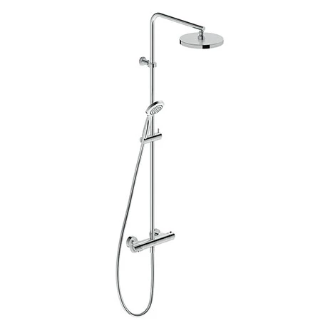 Add an elegance and timeless appeal to the bathroom with the B.1 thermostatic shower system from Duravit. It features a large 200mm round overhead shower and a shower handset perfect for rinsing. The shower system incorporates a thermostatic cartridge that is designed to maintain a constant temperature and a safety lock to prevent scalding. Manufactured from brass with a stunning chrome finish.
