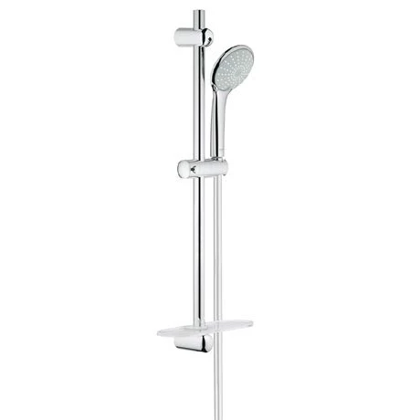 Step up your shower game with the innovative Grohe Euphoria Duo Spray Shower Slider Rail Kit. The shower handset offers two different spray modes to choose from: a revitalising Rain Spray, and a SmartRain Spray that helps you save water by reducing the flow without compromising on comfort. The kit comes with a tray to keep your shower gel in easy reach, plus TwistFree technology to stop the shower hose from twisting. Grohe’s special StarLight® chrome coating also ensures the shower is easy to clean – and the nozzles can be kept clear of limescale with just a wipe.