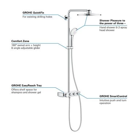 - GROHE QuickFix system means you can install your new shower quickly and easily