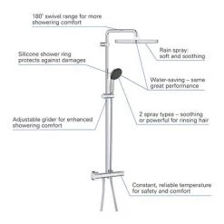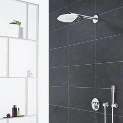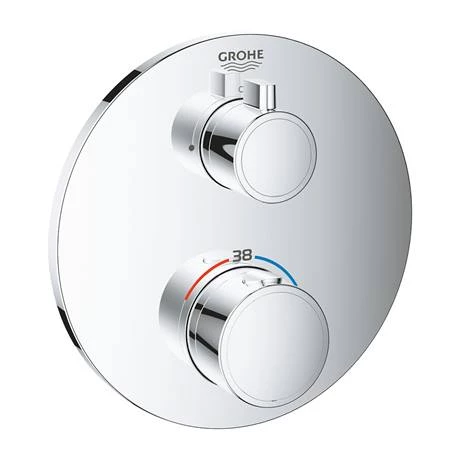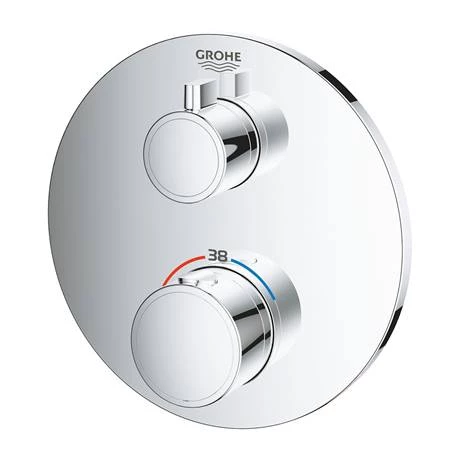 The Grohtherm shower mixer trim offers safe, precise control in a sleek shape. Packed with many features it provides the perfect final element for your shower. GROHE TurboStat technology prevents any unpleasant temperature fluctuations. It’s family-friendly too as the GROHE SafeStop override button is set at 38°C so scalding is a thing of the past. And the GROHE SafeStop Plus optional temperature limiter lets you add a further limit of 43°C for an extra level of safety.