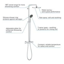 - GROHE SafeStop Plus optional temperature limiter at 43°C or 46°C
