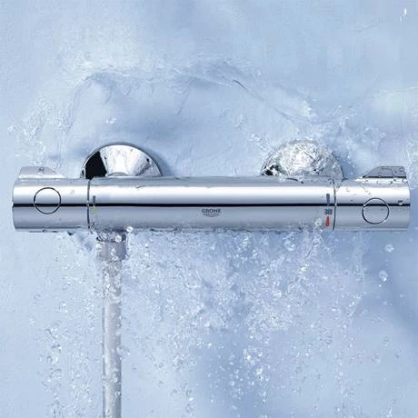 This Grohtherm 800 Thermostatic Shower Mixer is safe and ergonomic and great value for money. It benefits from GROHE TurboStat® technology, your water temperature stays constant, regardless of any fluctuations in your water supply or water pressure. The easy to grip controls can always be adjusted effortlessly, even with soapy hands. The integrated SafeStop Plus system comes with a two-stage temperature limit. The first limit is preset at 38°C. If desired, temperatures of up to 43°C can be selected upon deactivating the SafeStop button. With GROHE EcoJoy® technology, you can indulge in a perfectly comfortable shower while reducing water consumption.