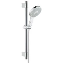 This premium Power&Soul 160 Shower Slider Rail Kit is perfect for upgrading your shower. The kit consists of a 600mm shower rail and metal wall-mounting brackets, 1750mm Silverflex hose and a luxury shower head with 4 spray functions – GROHE Rain O2, Rain, Jet and Bokoma Spray, all of which deliver a revitalising showering experience. For quick and easy installation the wall-mounting brackets of the shower rail can be adjusted to use existing drill holes or position them in the joints between tiles.