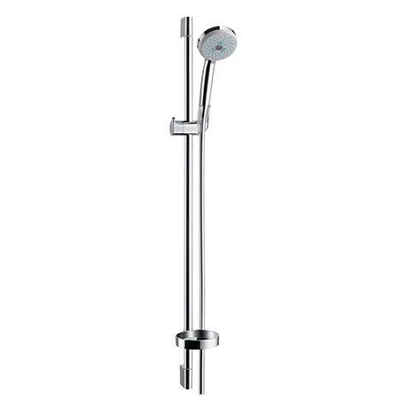 This Croma Multi 3 Spray Shower Slider Rail Kit with Soap Dish is sturdy, easy to clean and comes with a smooth running shower slider. It allows you to fix the shower head to the perfect height – whatever your size, or showering position. The shower slider can be conveniently angled so it can be adjusted to your specific needs. It features 3 spray patterns: Rain – perfect for rinsing shampoo out of your hair, Massage – a concentrated spray that simply washes the day’s stress away, Mono – a targeted, soothing relaxation spray from the centre of the shower. The QuickClean rub clean nubs loosens any limescale deposits making sure your hand shower looks beautiful, and stays working for longer. Consists of handshower, 90cm slider rail and 1.6m shower hose.