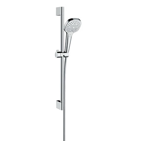 This Croma Select E 3 Spray Shower Slider Rail Kit promises you showering indulgence on a grand scale. It allows you to fix the shower head to the perfect height – whatever your size, or showering position. It features three spray functions for an energising, invigorating showering experience. The QuickClean rub clean nubs loosens any limescale deposits making sure your hand shower looks beautiful, and stays working for longer. Consists of handshower, 90cm slider rail and 1.6m shower hose.