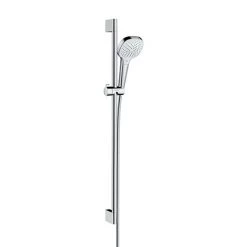 This Croma Select E 3 Spray Shower Slider Rail Kit promises you showering indulgence on a grand scale. It allows you to fix the shower head to the perfect height – whatever your size, or showering position. This EcoSmart model reduces water consumption by up to 60%, as well as energy consumption. It features three spray functions for an energising, invigorating showering experience. The QuickClean rub clean nubs loosens any limescale deposits making sure your hand shower looks beautiful, and stays working for longer. Consists of handshower, 90cm slider rail and 1.6m shower hose.