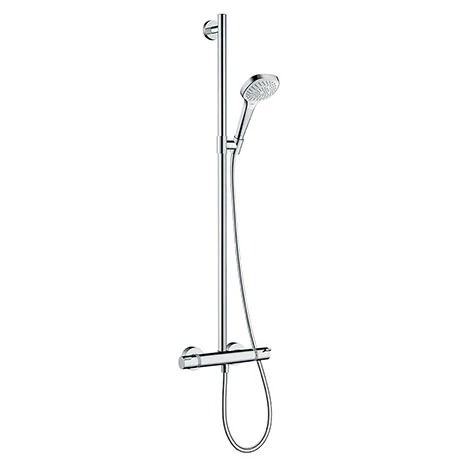 The Croma Select E SemiPipe Multi with Thermostatic Shower Mixer offers elegant design, amazing functionality and reliable quality. This complete shower system adds a touch of sophistication to any bathroom. It features three spray functions for an energising, invigorating showering experience. The QuickClean rub clean nubs loosens any limescale deposits making sure your hand shower looks beautiful, and stays working for longer.