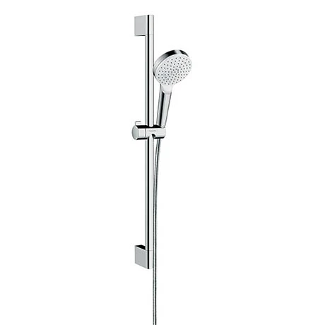 This Crometta 1 Spray Shower Slider Rail Kit is sturdy, easy to clean and comes with a smooth running shower slider. It allows you to fix the shower head to the perfect height – whatever your size, or showering position. The shower slider can be conveniently angled so it can be adjusted to your specific needs. It’s Rain spray is perfect for rinsing shampoo out of your hair while the QuickClean rub clean nubs loosens any limescale deposits making sure your hand shower looks beautiful, and stays working for longer. Consists of handshower, slider rail and 1.6m shower hose.