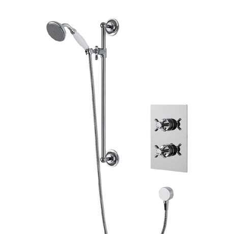 This classic Dawlish shower features an adjustable riser with a dual control thermostatic shower valve. The sleek elegance and timeless style makes it ideal for a traditional bathroom. Available in chrome and gold and quality assured by a 5 year guarantee.
