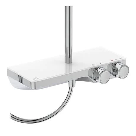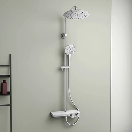 Ceratherm S200 most prominent feature is of course the shelf design. As well as making a design statement, you can make the most of your shower space with models that boost bathroom storage, without compromising on aesthetics. Features an Idealrain 250mm round rainshower, 3 function Idealrain Evo Jet round handspray and 1.75m Ideaflex hose.