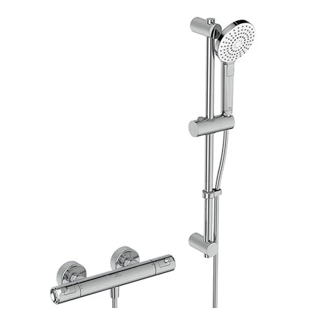 Get everything you need from the Ceratherm T50 exposed thermostatic shower mixer pack, comprising of fixed riser and multifunction Idealrain EVO round handspray. Whatever your preferred temperature, Ceratherm T50 stays cool to the touch. It uses Cool Body technology to ensure the hot water flow is always surrounded by cold water, protecting users of all ages from scalding, and offering total comfort of use.
