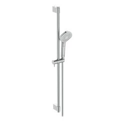 This Idealrain Evo Jet shower kit includes a 3 function diamond shaped Ø110mm handspray, featuring 3 shower modes all selectable via a single push button, 900mm slide rail and 1.75m IdealFlex hose. Suitable for high pressure installations.