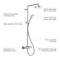 This shower is perfect for our modern bathroom. The thermostatic feature is very reliable, and the chrome finish is stunning.