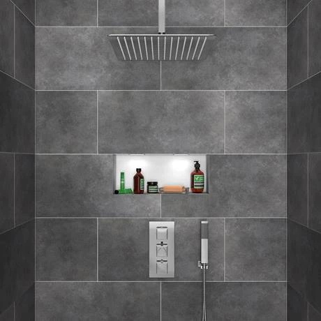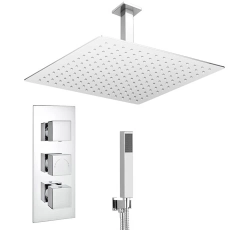 Bring a cool and contemporary aesthetic to your bathroom or wet room with the Milan Shower Package. The set includes a large rainfall shower head to add a touch of luxury to your space. A concealed 3 outlet shower valve lets you switch between the head and separate handheld shower or use them at the same time. Longing for a blissful shower experience? Use the intuitive handles to tailor the temperature and flow exactly to your liking. Each piece in this set has a simple, angular design and features a gleaming polished chrome finish for a distinctly modern look.