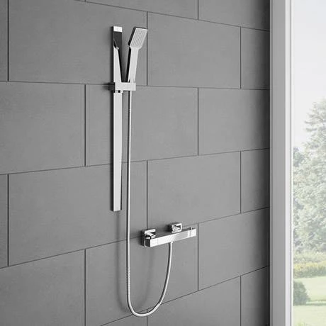 A stylish super thin riser rail kit. It’s minimalist design and shiny chrome plated finish will look great in any style of bathroom. Riser rail attaches flush to wall for a sleek stylish appearance. Supplied with square shower handset and rust resistant shower hose.