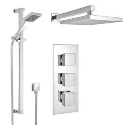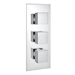 The Milan Twin Square Concealed Shower Valve with Diverter combines modern style with impressive functionality. A rectangular faceplate matches elegantly with the two outlet shower valve handles that twist to control temperature and flow. Whether you fit it vertically or horizontally, its lustrous chrome plated finish will be a contemporary enhancement in your bathroom or en suite. The convenient built in diverter allows you to switch easily between two different water outlets, such as a fixed head and body jets, for a sensual showering experience.