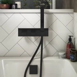 Arezzo Matt Black Square Wall Mounted Thermostatic Shower Valve with Handset