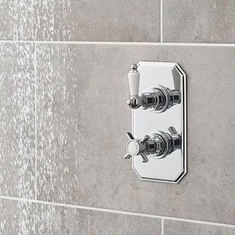 The Edwardian range of concealed thermostatic shower valves brings substantial timeless elegance to the modern bathroom. This Concealed Thermostatic Twin Shower Valve offers thermostatic showering via two easy-to-operate controls, designed to work with a single shower accessory. Suitable for all types of plumbing installation this shower valve has the added safety benefit of a built in anti scald device should the cold water supply fail.